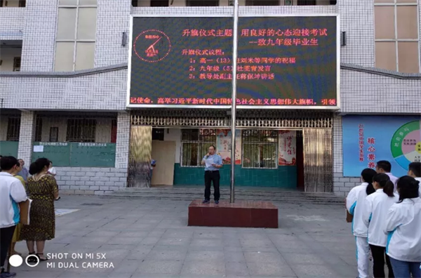 端午节和“中考”同步临近,6月11日早晨,阜阳四中在校园广场举行了以“迎中考”、“端午情”升旗仪式,阜阳四中校长刘杰及全体师生参加了升旗活动。