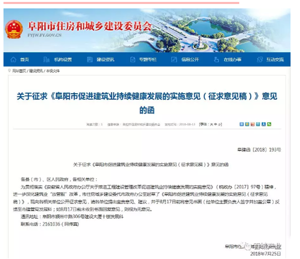 阜阳市关于促进建筑业持续健康发展的实施意见(征求意见稿) 为进一步深化建筑业“放管服”改革,加快产业转型升级和新旧动能转换,促进全市建筑业持续健康发展,根据《安徽省人民政府办公